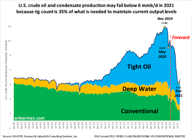 Estados Unidos, que fue el único país que evitó que el mundo llegara al peak oil en 2015. Estados Unidos, que era quien tenía que evitar los peores escenarios del declive petrolífero de aquí a 2025 multiplicando por tres su sector del fracking. Ese mismo Estados Unidos está viendo cómo su sector petrolero se va al garete. Y con él, el de todo el mundo.