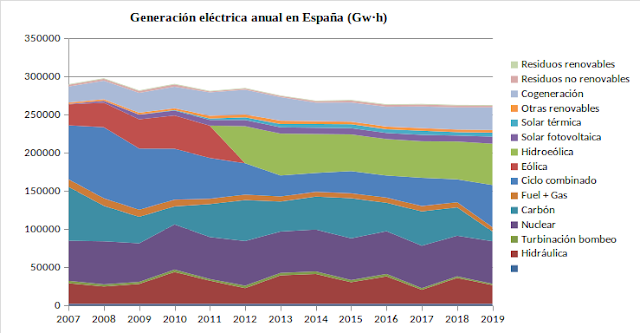 Con 108 gigavatios (GW) de potencia eléctrica instalada en un país con un consumo medio alrededor de los 30 GW y un consumo máximo de 45 GW en julio de 2008, España tiene claramente un exceso de capacidad eléctrica instalada: España tiene el potencial de producir más electricidad de la que puede consumir, y eso aún teniendo en cuenta el factor de planta de los diferentes sistemas. Efectivamente, con 70 o a lo sumo 80 GW de potencial eléctrica instalada España podría cubrir perfectamente sus necesidades de electricidad actuales. Peor aún: el consumo eléctrico de España está en decadencia desde la crisis de 2007, así que el exceso de capacidad productiva se agrava con los años.