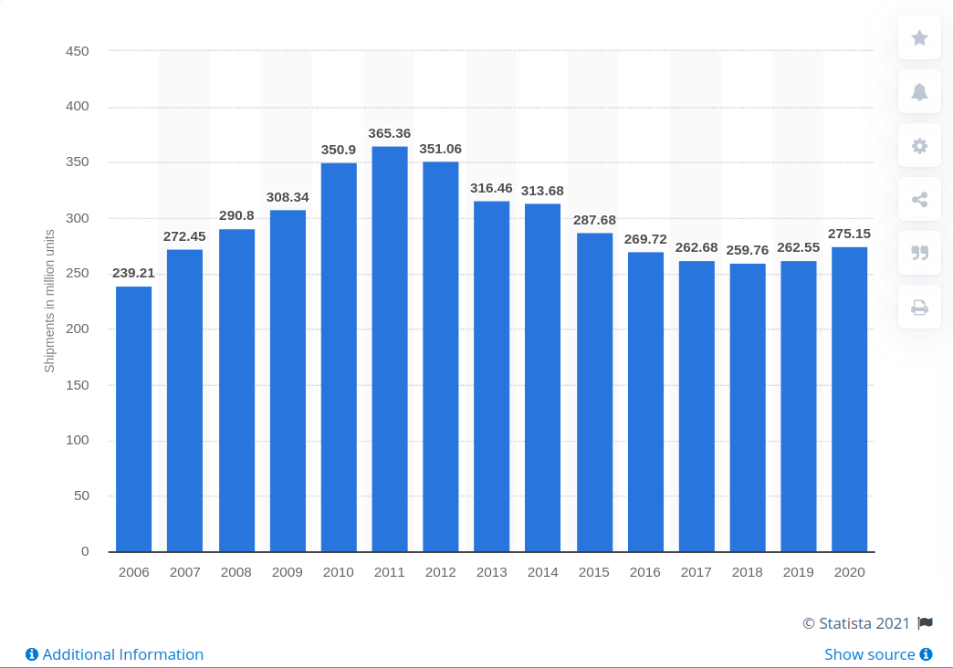 Sin embargo, uno luego va y mira las cifras de móviles producidos y ve que están más bien estancadas y en 2020 hubo de hecho un retroceso (la cifra de 2021 es una previsión del sector, bastante optimista, se tiene que decir).