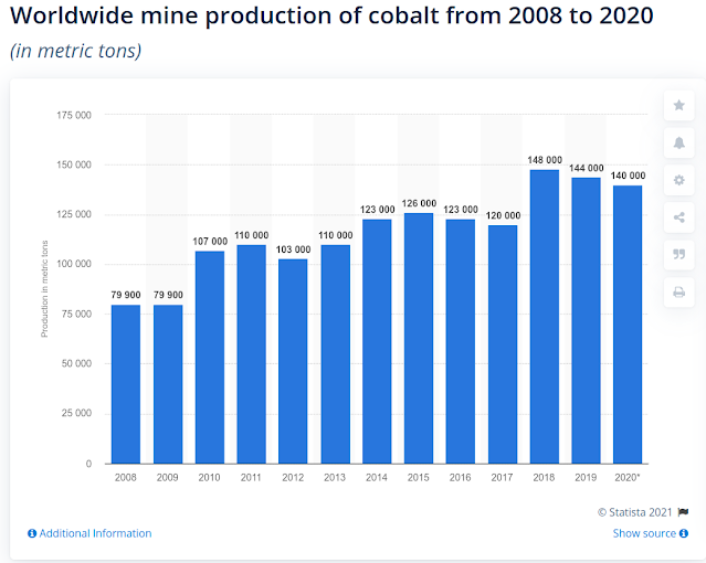 En cuanto a la producción de cobalto, por su parte, se está viendo que es difícil de incrementar, e inclusive podría haber tocado o estar a punto de tocar su máximo.
