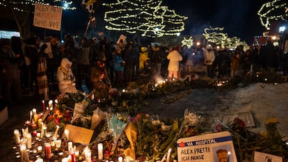 Además de en ese improvisado puesto, los silbatos los dan gratis en muchos puntos de Minneapolis: desde Birchbark Books, la librería de la premio Pulitzer Louise Erdrich, a la pastelería que hay frente al lugar en el que hace un par de sábados unos agentes de la patrulla fronteriza acribillaron por la espalda a Pretti. Por allí, como por el sitio en el que Good perdió la vida, centenares de personas pasan cada día para llorar en silencio, presentar sus respetos, compartir sus pensamientos en voz alta, dejar una vela encendida o un papel con algo escrito.