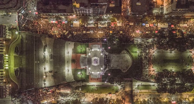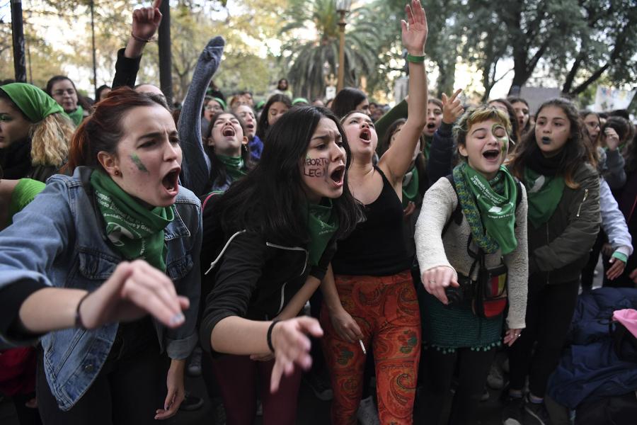 Con una cruz sobre su estrado, el presidente de la Cámara de Diputados Emilio Monzó (macrista) rezaba para no verse obligado a decidir con su doble voto, mientras las fuerzas de seguridad separaban a dos mil antiabortistas (de celeste) de centenares de miles que conformaban la marea verde, conformada por una amplia mayoría de mujeres jóvenes de entre 13 y 40 años, que tomó las calles en un clima de combate y al mismo tiempo festivo.