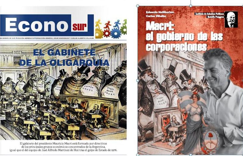A partir del triunfo del jefe del Grupo Macri, se publicaron notas e informes sobre los CEOs desembarcados junto a él en la administración de los estados nacional y bonaerense, neo funcionarios ocultos tras esas letras que corresponden a Chief Executive Officer, algo así como principal director ejecutivo de una empresa o corporación, ahora de un Estado. A solo dos semanas del traspaso de mando, el sociólogo Eduardo Halliburton y este periodista presentaron con nombre y apellido al “Gabinete de la Oligarquía” y explicaron que el mismo está formado por “directivos de los principales grupos económicos concentrados de la Argentina, igual que el equipo de José Alfredo Martínez de Hoz  tras el golpe de Estado de 1976” (2) (3)