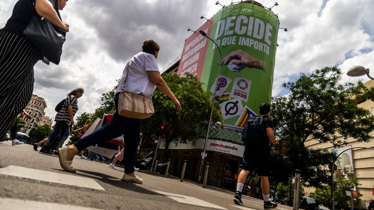 El ejemplo más claro es Vox, que ha comprado la retórica contra la Agenda 2030 en su discurso político cotidiano. Hace unos días, este partido colocó una lona en un edificio de la calle madrileña de Alcalá, una de las más importantes y transitadas de la capital, donde una mano que luce una pulsera con la bandera de España tira a la basura papeles con los símbolos de todo aquello a lo que se opone el partido ultra. Además de los símbolos del feminismo, los okupas, el movimiento LGTBIQ+, las banderas comunistas y la independentista catalana, el cartel incluye el logo de la Agenda 2030.