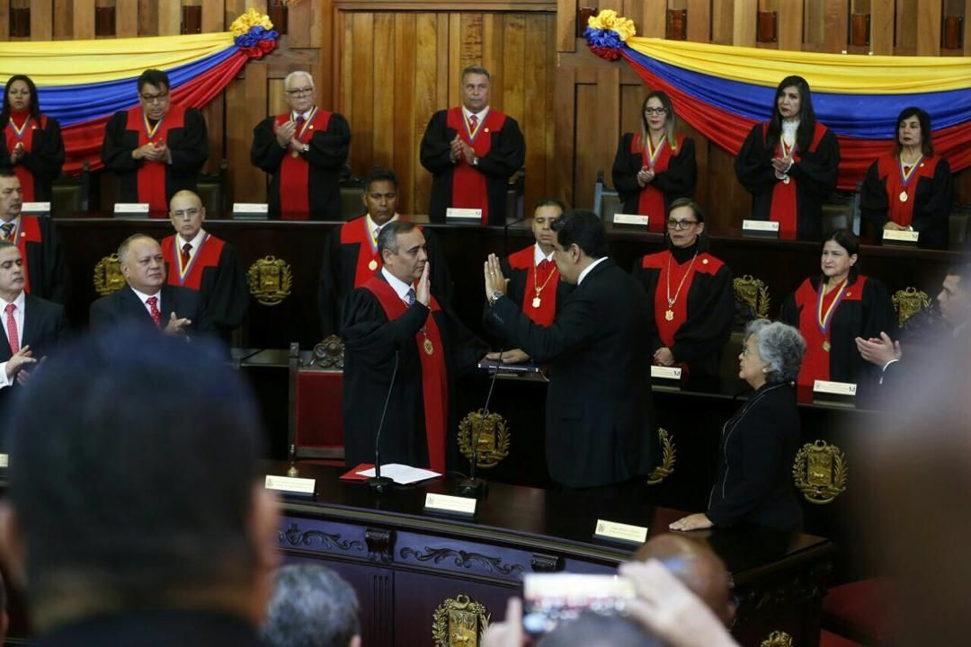 “Juro, a nombre del pueblo de Venezuela (…) Lo juro por mi vida”, dijo Maduro, quien recibió la banda presidencial del jefe del Tribunal Supremo de Justicia (TSJ). No es posible el cuestionamiento a su legitimidad: renovó su mandato con el más alto porcentaje de votos válidos (67%, que corresponde al 32% del total de electores) y se juramentó ante el Tribunal Supremo de Justicia, de acuerdo con lo previsto en el artículo 231 de la Constitución.