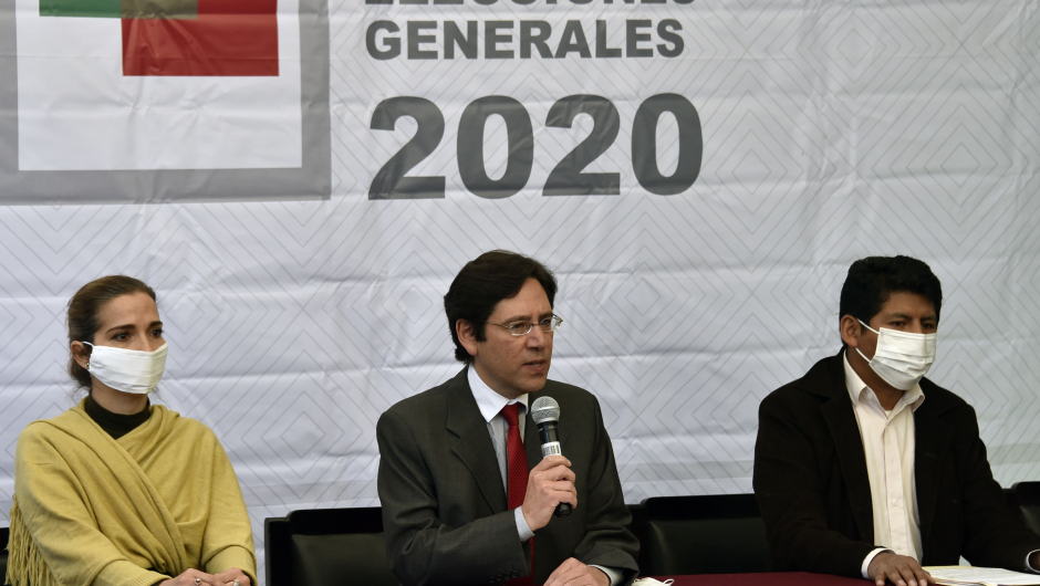 En junio, el presidente del TSE se reunió con Jeanine Áñez a puertas cerradas. Cabe cuestionar si lo hizo como mandataria o como candidata por la agrupación Juntos, ya que entonces aún detentaba el doble estatus. ¿Por qué se reunió con ella y no con el resto de las fuerzas políticas en contienda?